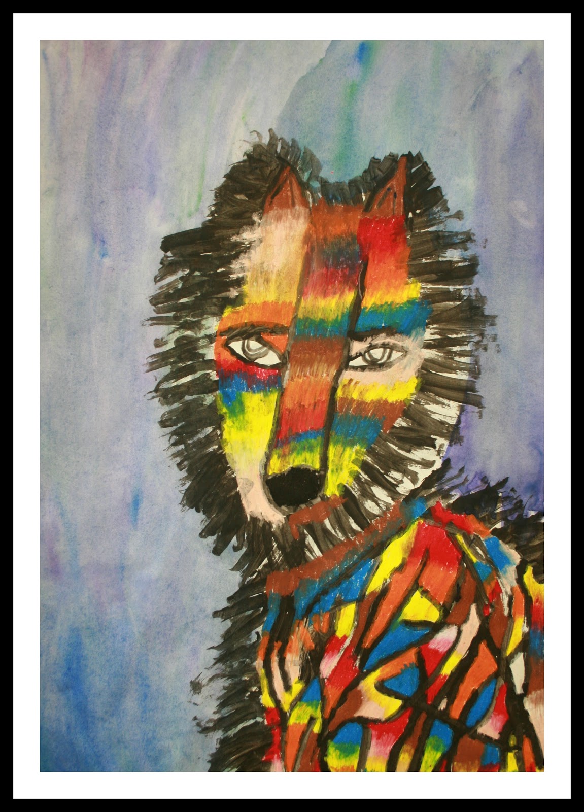A limited palate of oil pastel was used to add color, shading and blending as they went. Watercolor was used for the background using a wash technique.
